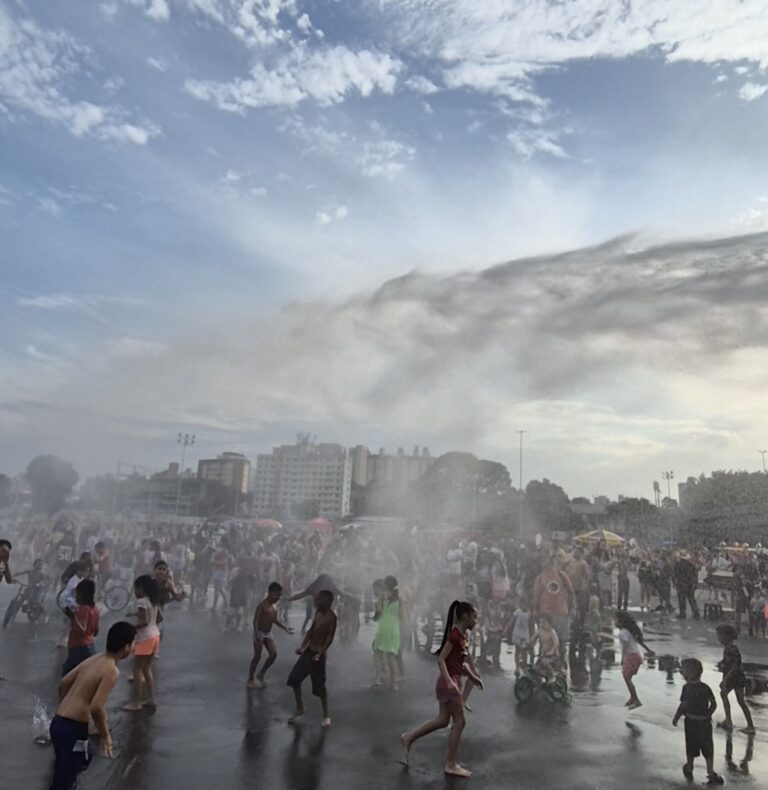 Neste domingo (26/10), de calor intenso, o Paço Municipal de São Bernardo do Campo se transformou em um verdadeiro parque de diversão ao ar livre! Um caminhão-pipa espalhou água na praça, e o que era para ser apenas um alívio para o asfalto quente virou uma grande festa para as crianças e famílias que estavam no local.