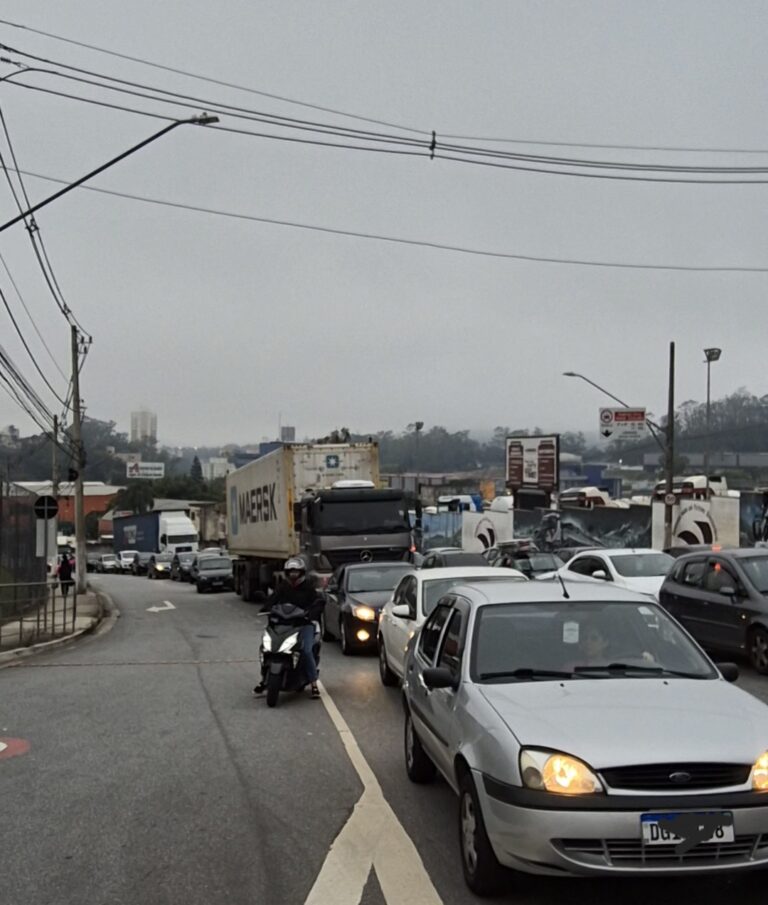 Uma carreta de aproximadamente 10 toneladas travou o trânsito na estrada Galvão Bueno, próximo ao Terminal Batistini, em São Bernardo do Campo, no fim da tarde desta sexta-feira (7).