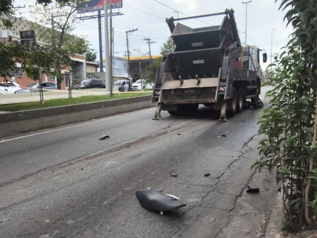 ACIDENTE MOTO E CAMINHÃO FECHOU A AVENIDA PIRAPORINHA.