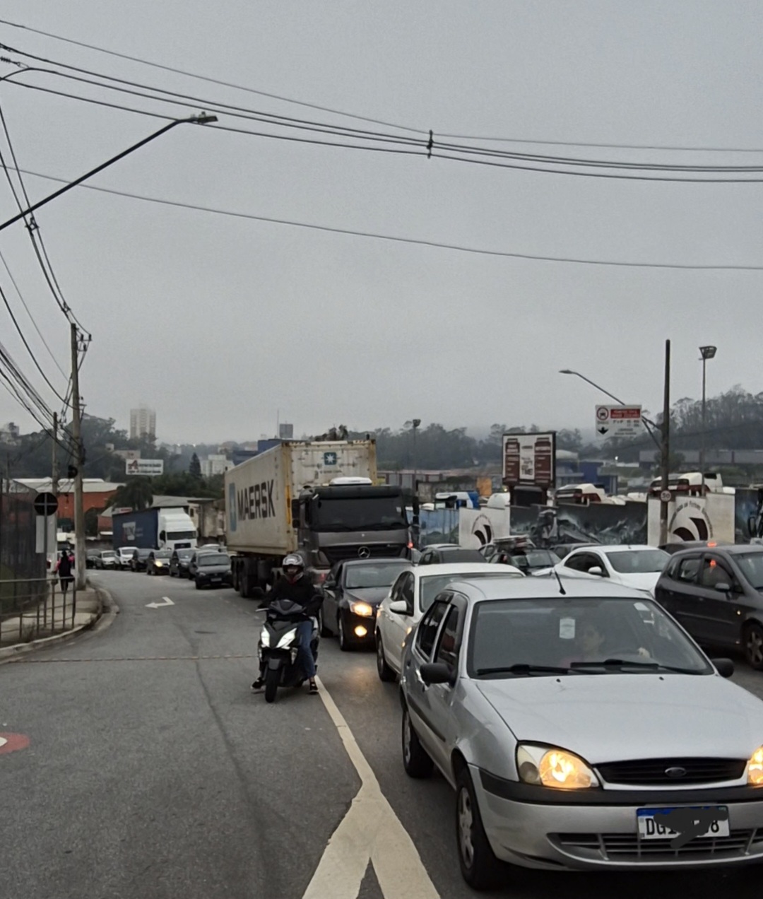 Uma carreta de aproximadamente 10 toneladas travou o trânsito na estrada Galvão Bueno, próximo